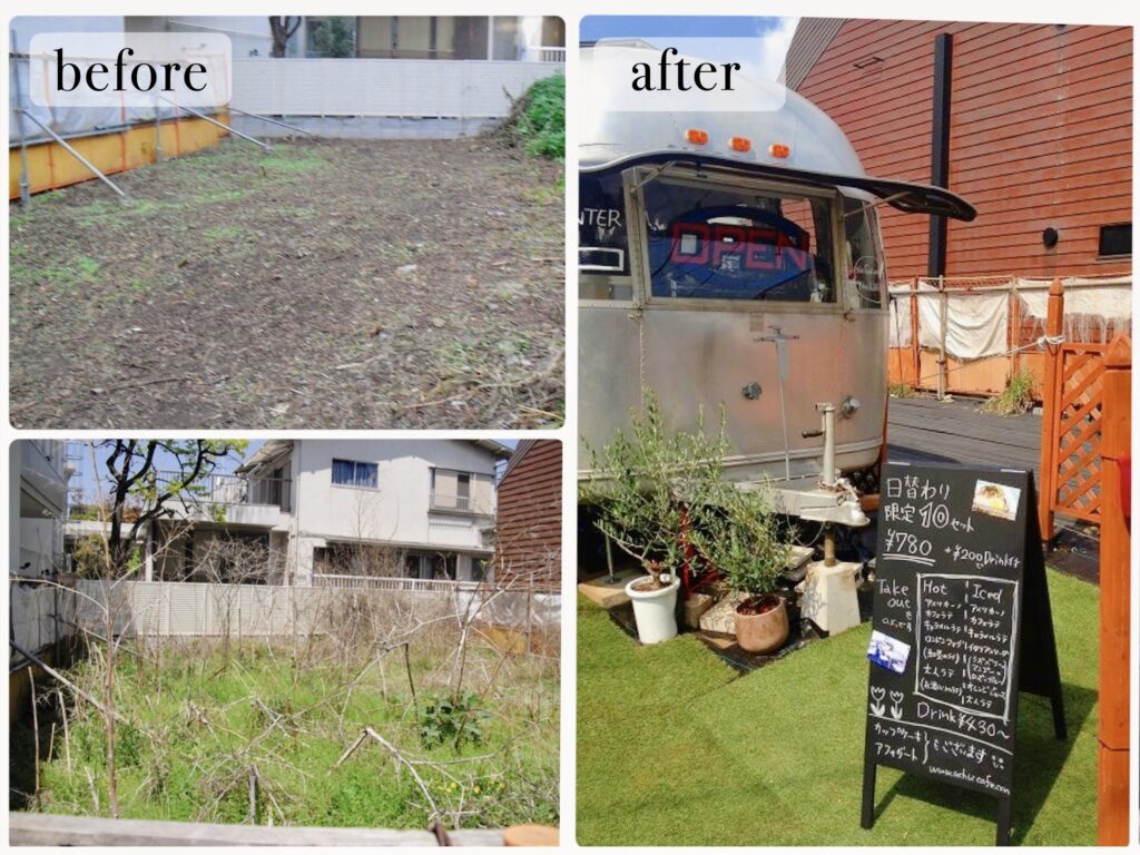 →表参道の約20坪の空き地について、オーナー様から 「費用負担なく有効活用してほしい」と依頼があり、月極駐車場、コインパーキング、バイク駐車場、コンテナハウス、戸建賃貸など検討した結果、費用面、収入面にて優れているトレーラーハウス式店舗の運営を決定。